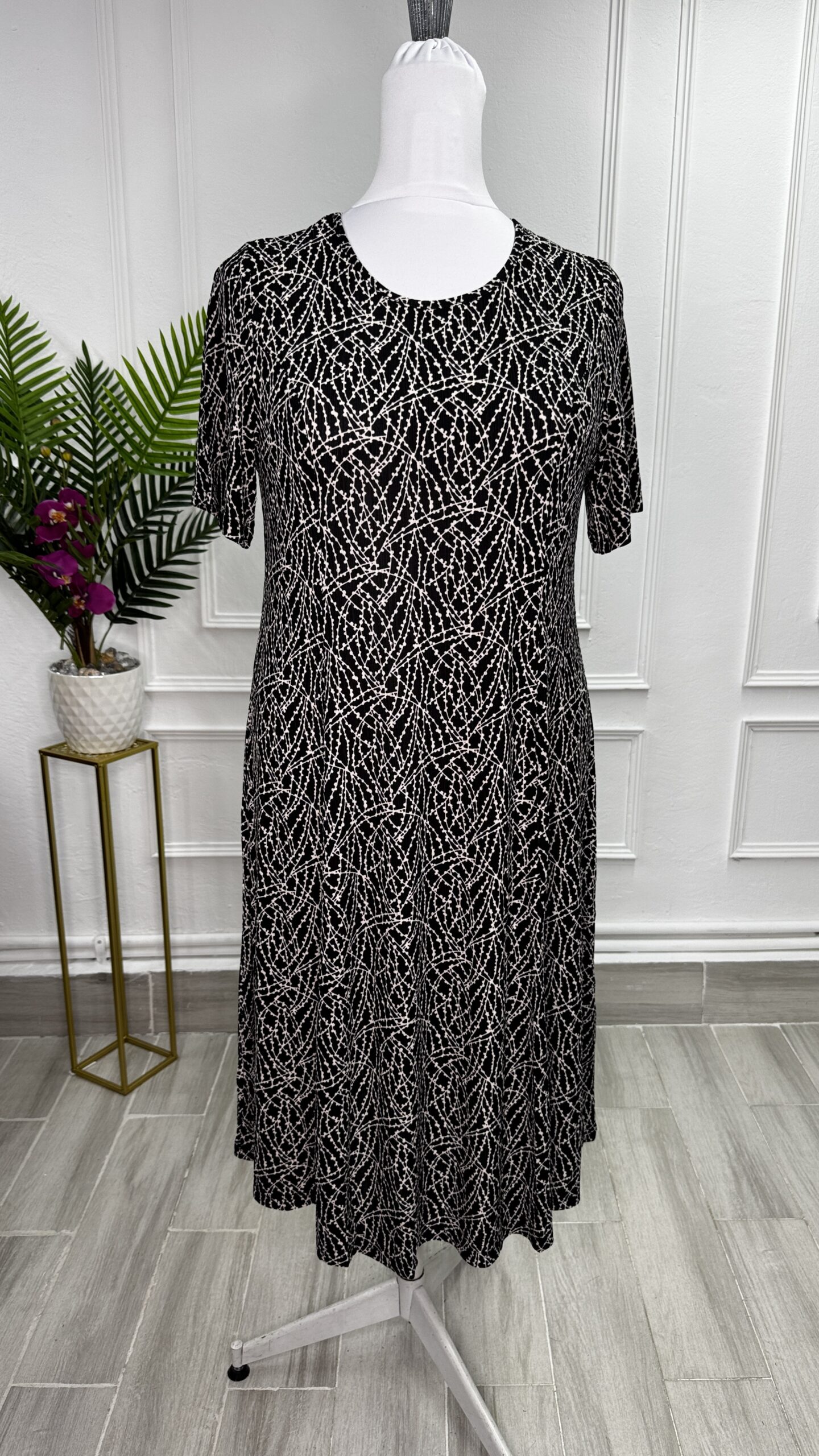 Rochia este disponibilă in lungimea expusa in fotografii . Mânecile scurte și croiala in 6 clini adaugă un plus de feminitate și lejeritate.