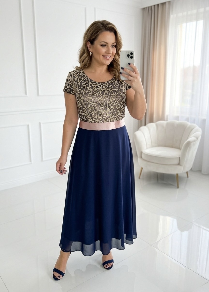 Redescoperă feminitatea într-o piesă vestimentară creată special pentru a celebra siluetele cu forme bogate (mărimi 50-56). Această rochie combină strălucirea discretă a dantelei cu fluiditatea voalului, fiind alegerea ideală pentru evenimente de seară, nunți sau gale unde vrei să te simți confortabil și sofisticat.